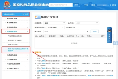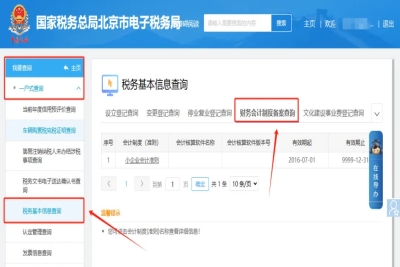 二、我要查詢—一戶式查詢—稅務(wù)基本信息查詢—財(cái)務(wù)會(huì)計(jì)制度備案查詢。