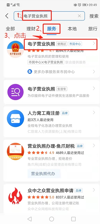 首先確保在使用的微信或和支付寶已經(jīng)實(shí)名認(rèn)證完成,在微信或者支付寶搜索欄里面輸入“電子營(yíng)業(yè)執(zhí)照”六個(gè)字,微信會(huì)在“小程序”里面顯示(支付寶會(huì)在“服務(wù)”顯示),點(diǎn)擊一下對(duì)應(yīng)的小程序(或者服務(wù)),進(jìn)入程序界面。  進(jìn)入“電子營(yíng)業(yè)執(zhí)照”程序之后,點(diǎn)一下“..
