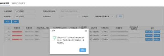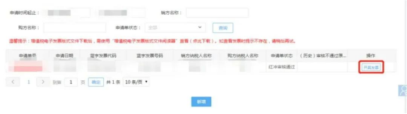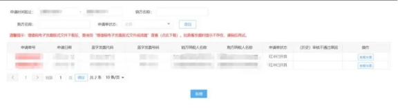 發(fā)票開具:可在電子稅務局“發(fā)票使用-個人出租房屋代開紅字發(fā)票(增值稅電子普通發(fā)票)”查看申請記錄,顯示狀態(tài)“紅沖審核通過”。點擊“開具發(fā)票”即可。