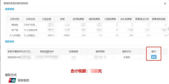 (1)用戶登錄電子稅務局,進入“個人出租房屋代開發(fā)票(增值稅電子普通發(fā)票)”查看審核結果。若審核不通過,可以修改后繼續(xù)提交;若審核通過,可以進行“繳款”操作。