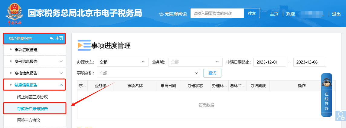 二、綜合信息報告—制度信息報告—存款賬戶賬號報告。