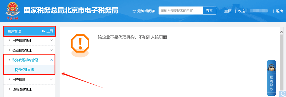 二、用戶管理—稅務(wù)代理機構(gòu)管理—稅務(wù)代理申請進入后點擊右上角的“代理用戶授權(quán)申請”發(fā)起申請。