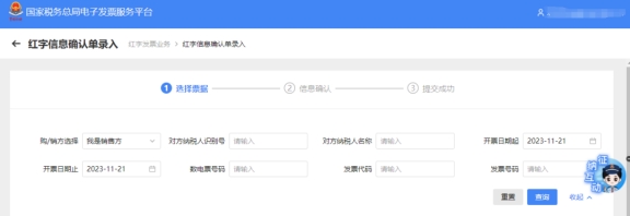 三、紅字發(fā)票開(kāi)票—紅字發(fā)票確認(rèn)信息錄入。