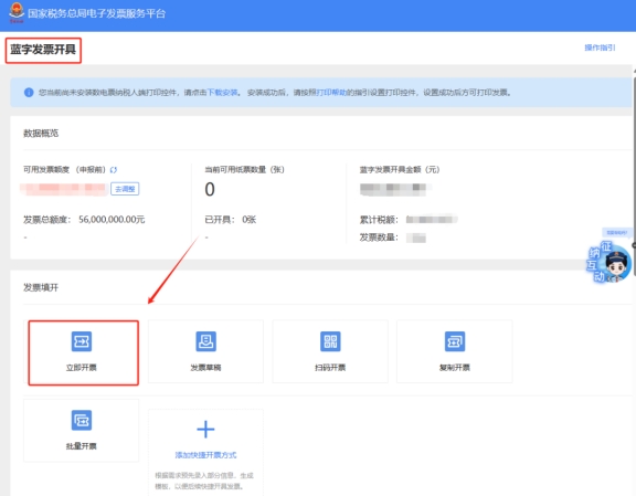 四、立即開票進(jìn)入發(fā)票填開頁面輸入購銷方信息及開票信息,信息都填寫無誤后點(diǎn)擊頁面下方“發(fā)票開具”即可開票成功。