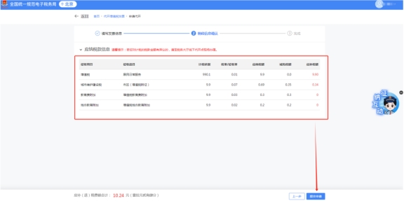 如需在發(fā)票票面?zhèn)渥⑵渌畔?,可在“備注信息”一欄填?xiě)需要備注的內(nèi)容,否則無(wú)需填寫(xiě)。點(diǎn)擊“下一步”,進(jìn)入納稅信息確認(rèn)頁(yè)面。