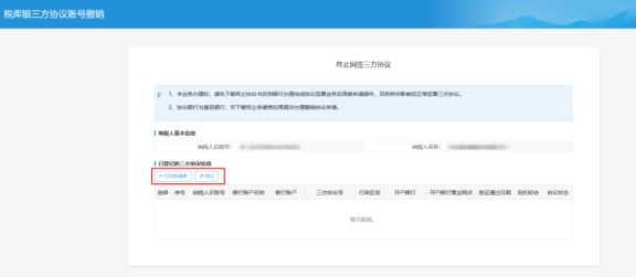 三、點(diǎn)擊“打印申請表”完成后點(diǎn)擊【終止】,協(xié)議狀態(tài)變?yōu)榻K止協(xié)議。