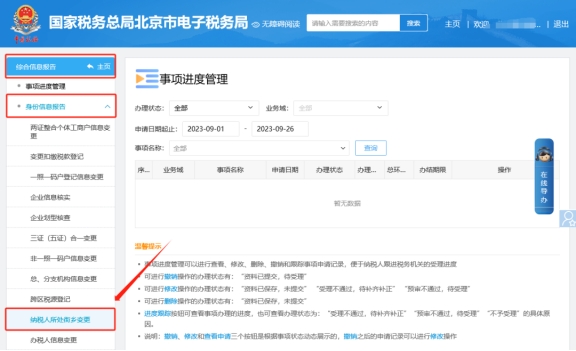 二、綜合信息報(bào)告—身份信息報(bào)告—納稅人所處街鄉(xiāng)變更。