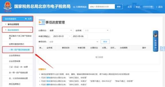 二、綜合信息報(bào)告—身份信息報(bào)告—一照一碼戶(hù)登記信息變更。